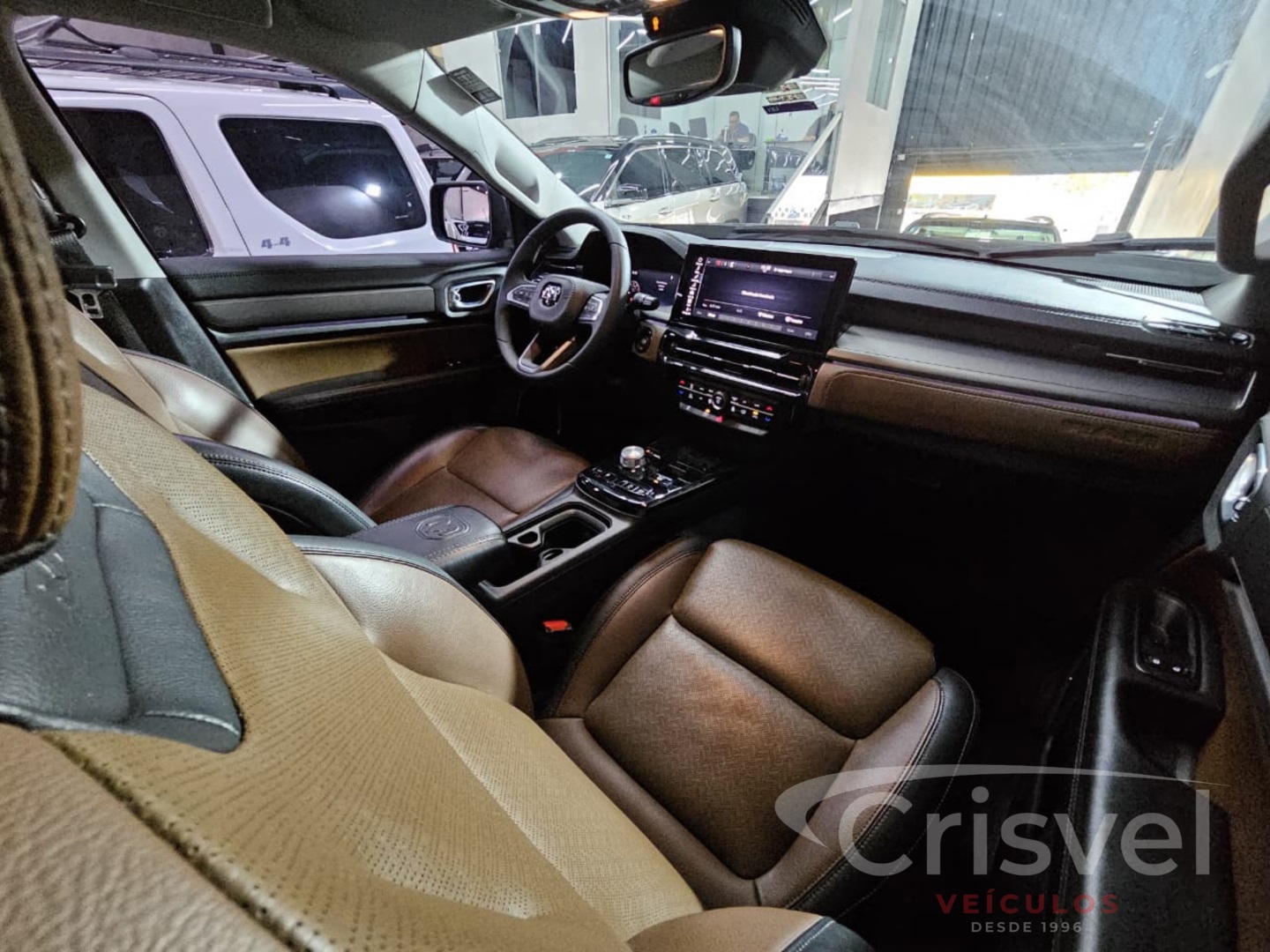 Luxo e Tecnologia: Interior premium em couro, painel digital e multimídia de 10.1". Com ar dual-zone e acessórios instalados, oferece o conforto de um sedan de luxo com a capacidade de carga de uma picape.